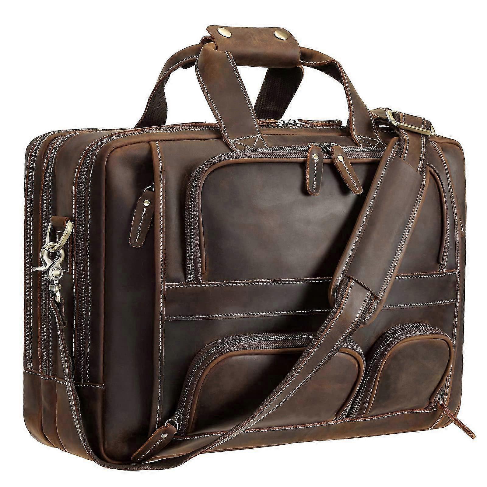 Polare Full Grain Cowhide Leather 17'' Laptop Large Briefcase for Men Business Messenger Bag Work Bag