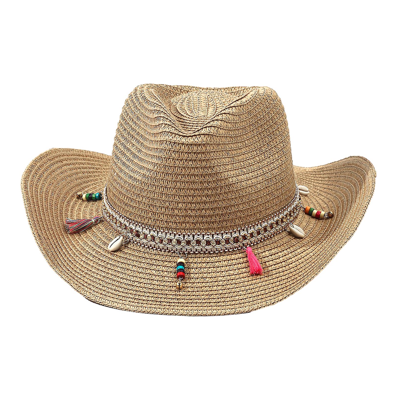 Bohemia Style Straw Hat Tassel Shell Colorful Rope Decor Non-stuffy Big Brim Sunscreen Jazz Hat Fashion Accessories