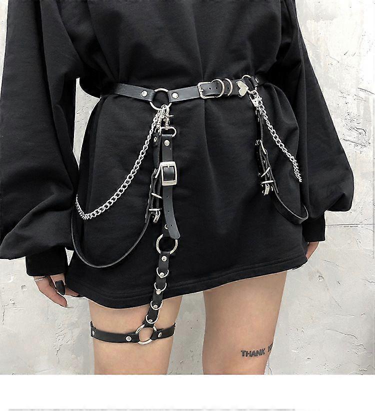 Pu Leather- Hip-hop Rock Nightclub, Heart Punk Belt With Metal Waist Chain compatible