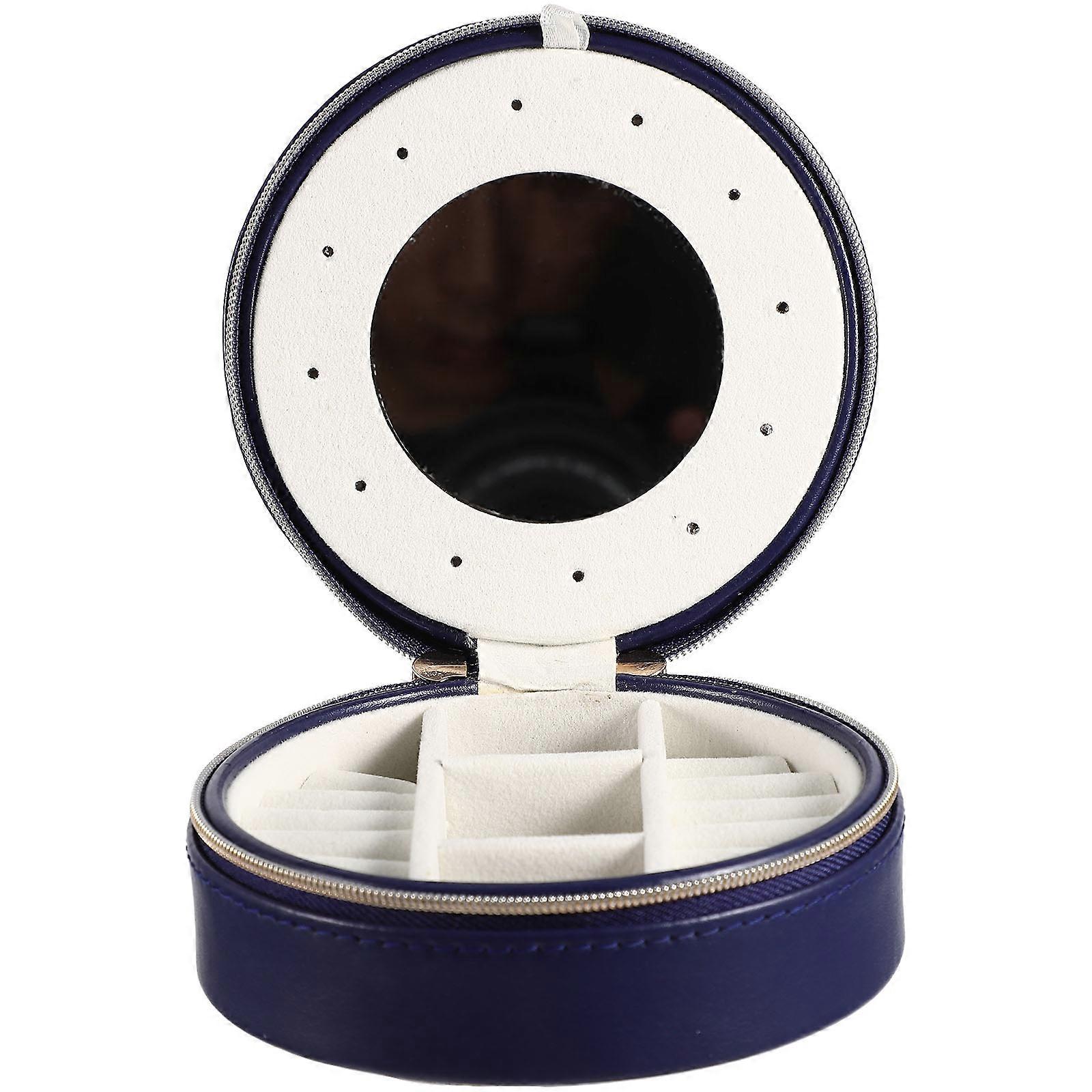 PU Leather Portable Jewelry Storage Container Round Multi-Grid Jewelry Box For Travel Home Use Blue 1Pack