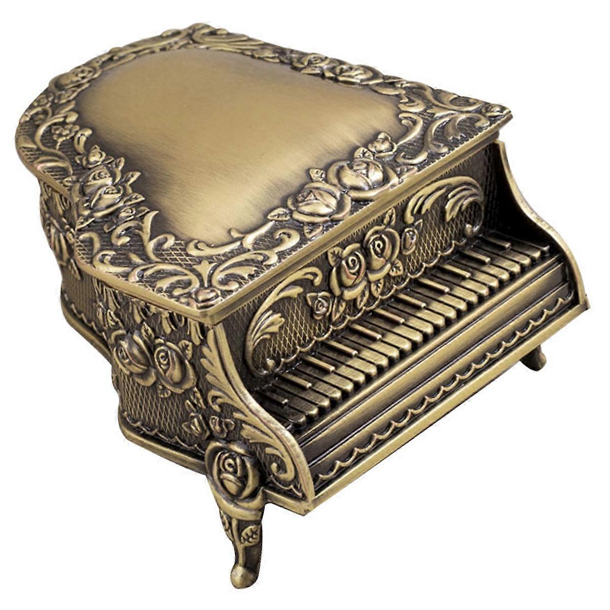 Piano Shaped Rose Box Trinket Box Home Decoration Golden 13X10X6.7CM Metal Storage 1Set