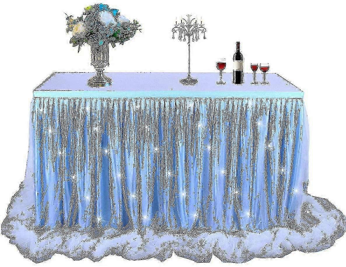 Baby Blue Tulle Tutu Table Skirt For Wedding Baby Shower And Birthday Party ,led Table Skirt For Rec