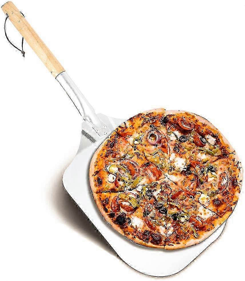 Pizza Pusher, Aluminum Pizza Peel, Pizza Peel, Pizza Peel With A Large Surface, Practical Wooden Handle, Easy To Store, Convenient To Use, Suit