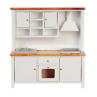 بيت الدمى الأبيض & وحدة مطبخ أوك حديثة كاملة مع موقد فرن مغسلة 1:12