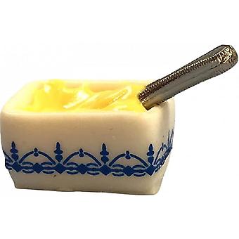 بيت الدمى الأزرق & طبق زبدة بيضاء مع سكين ملحق مطبخ مصغر 1:12
