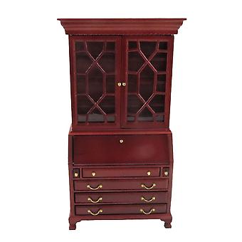 بيت الدمى مكتب الماهوجني مكتب & خزانة مصغرة دراسة أثاث مكتبي 1:12