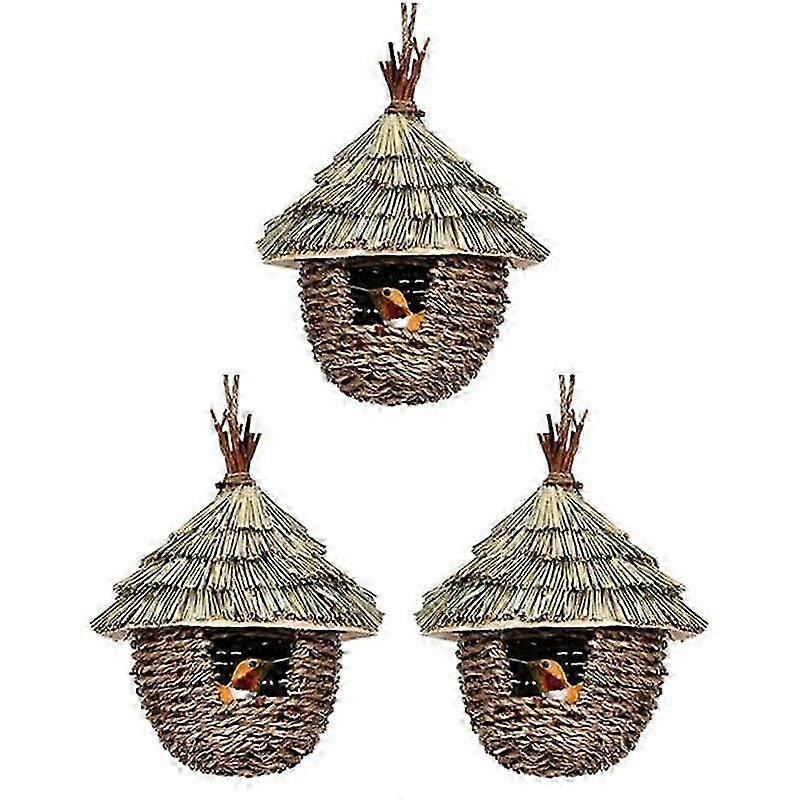 Bird House,3Pcs Hand Woven Hanging Humming Bird House for Nesting,Natural Grass Bird Nest for Garde