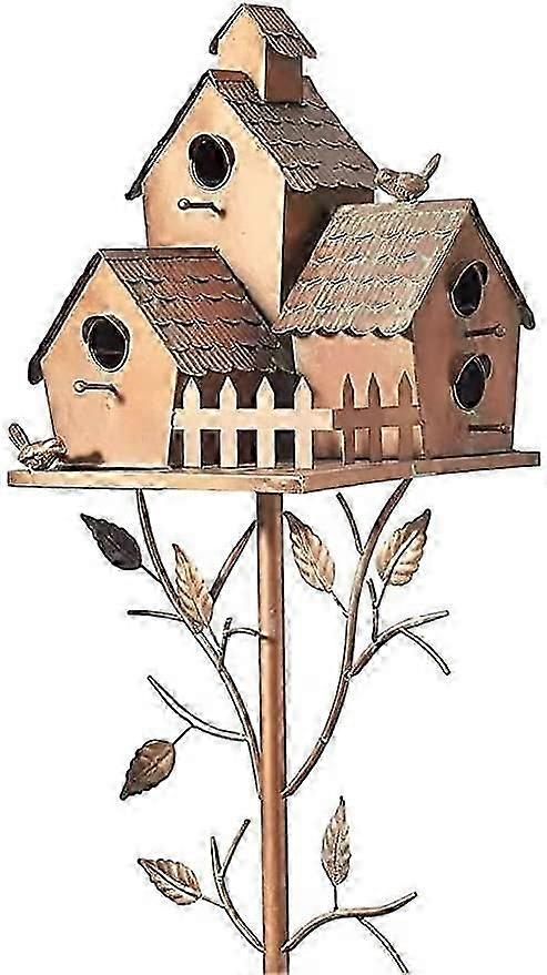 Metal Bird House with Pole, Copper Cottage Bird House Stakes, Large Bird Houses for Courtyard Backyard Patio Outdoor Garden Decor, Resting Place for B