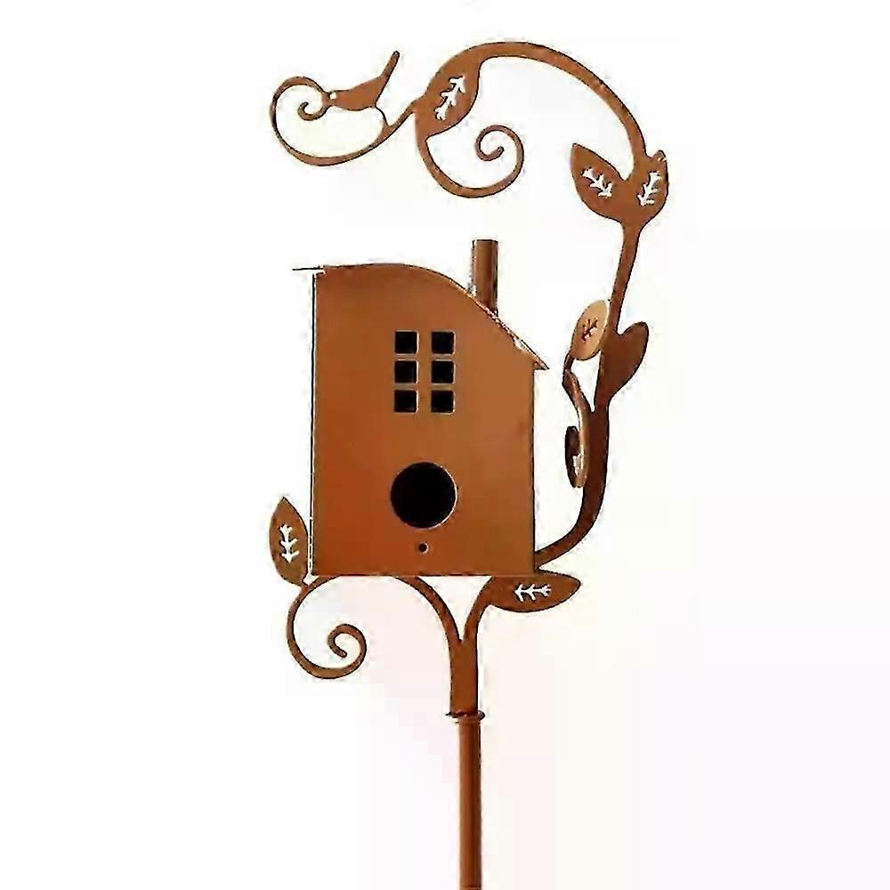 Bird House With Pole Metal Bird Feeders Garden Stakes Art Bird Houses For Courtyard Backyard Patio Outdoor Garden Decoration
