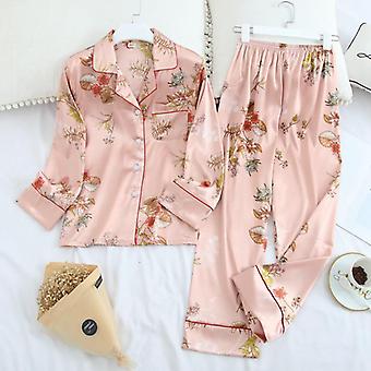 Long Sleeve Pajamas Autumn Ice Silk Long Sleeve Trousers Suit Printing Fashion Pyjamas Set