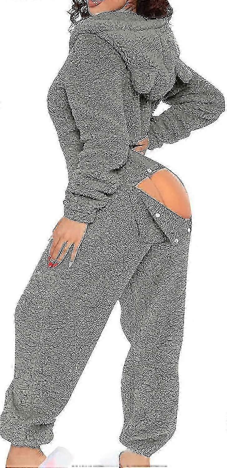 Pajamas Sexy Adult Onesie For Women Butt Flap Fleece Hooded One Piece Pajamas Womens Fluffy Sleepwear,black Friday
