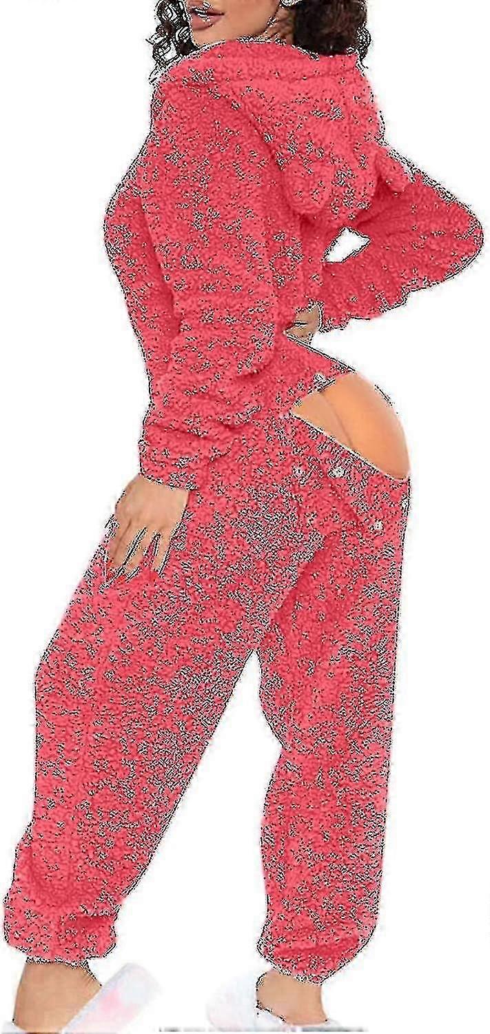 Pajamas Sexy Adult Onesie For Women Butt Flap Fleece Hooded One Piece Pajamas Womens Fluffy Sleepwear,black Friday