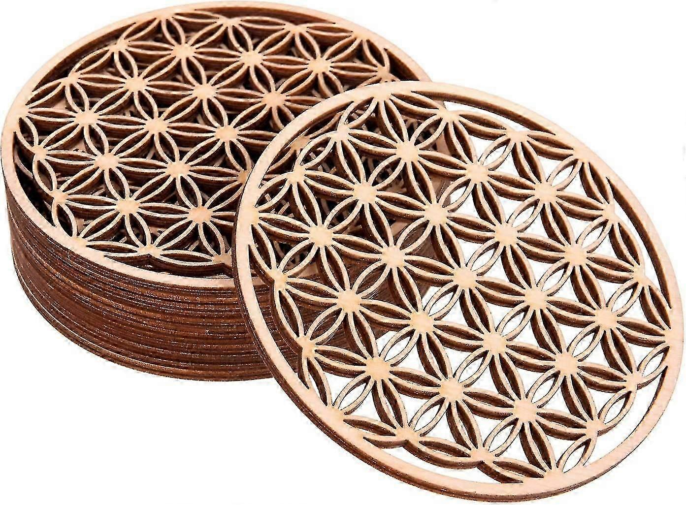 Birch Wood Coasters With Flower Of Life Design - 10 Pieces, Size 10x10 Cm. - Panel In Wood Under Glass. A Perfect Decoration For Your Home, Bar (flowe