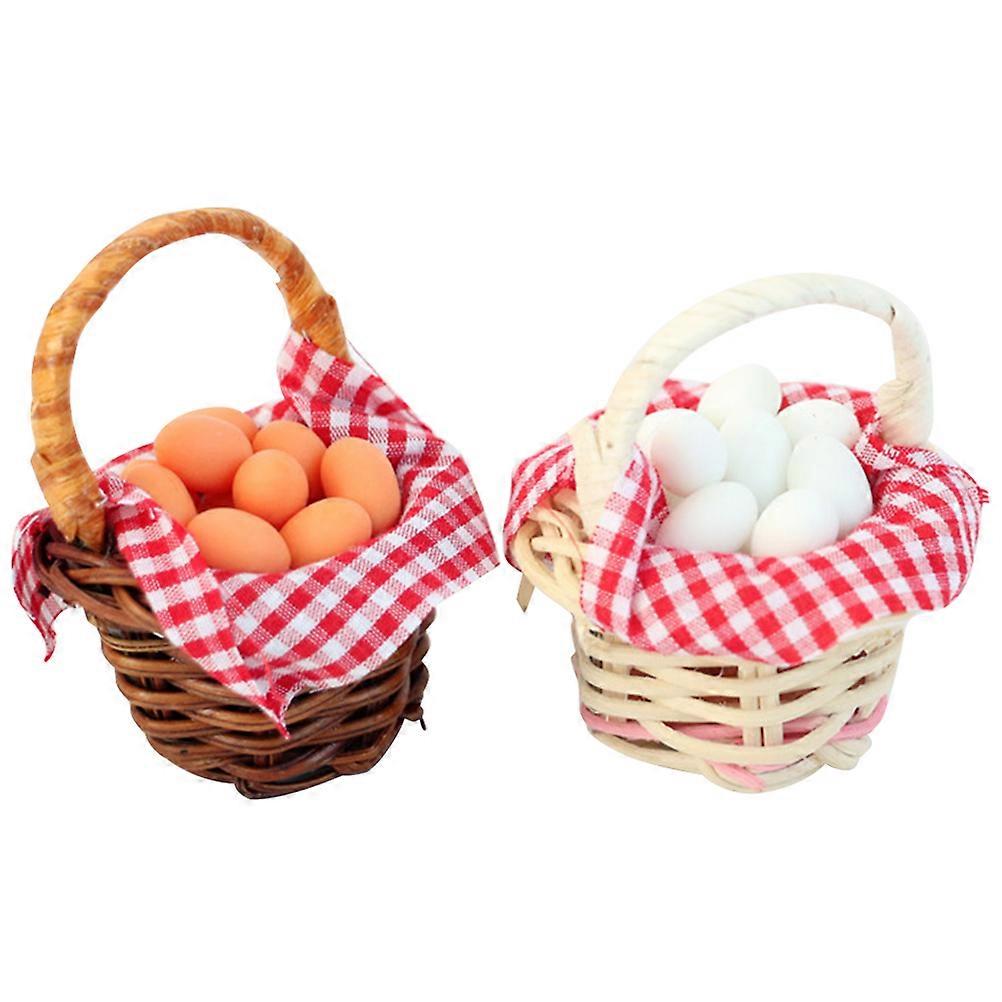 Mini Dollhouse Eggs Mini House Egg Ornaments Dollhouse Accessory Resin Bamboo Photography Prop 2Pcs
