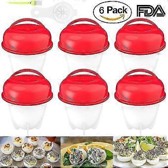 بيض مسلوق طقم سيليكون غير لاصق من 6 قطع - طباخ بيض بيض مسلوق بدون قشرة 6 أكواب بيض - أحمر-ZZY