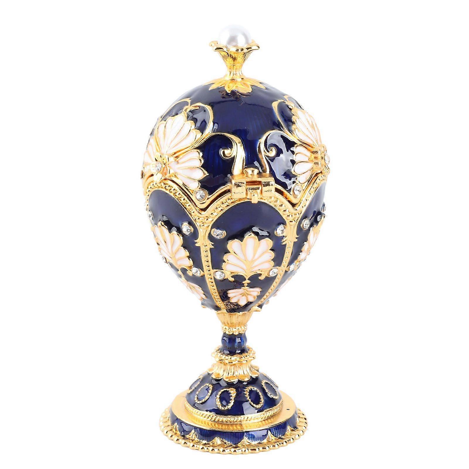 Egg Style Trinket Box Hinged Enamelled Rhinestones Multifunctional Home Decor Alloy Vintage Jewelry Box Gold Blue