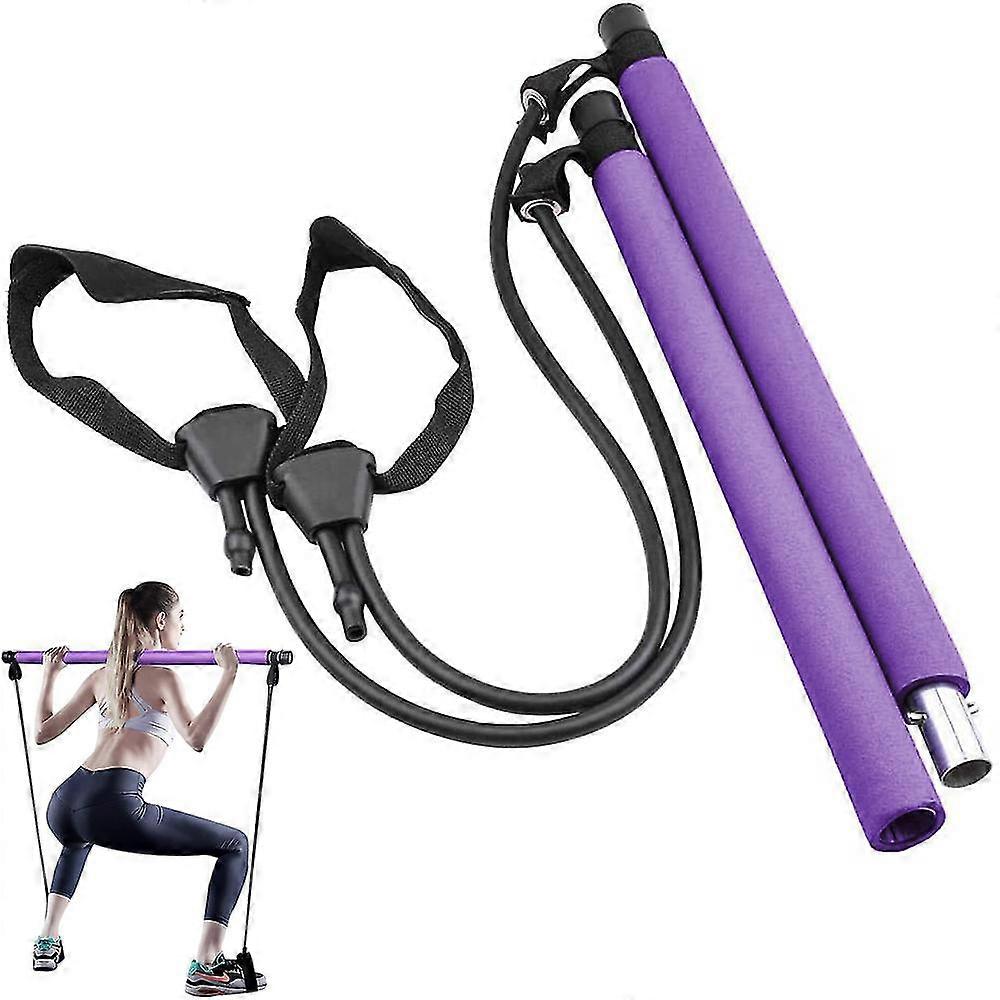 Pilates Exercise Stick Kit Portable Compact 3-Section Yoga Resistance Bands For Legs And Butt, Pilates Bar With Foot Strap For Full Body Workout