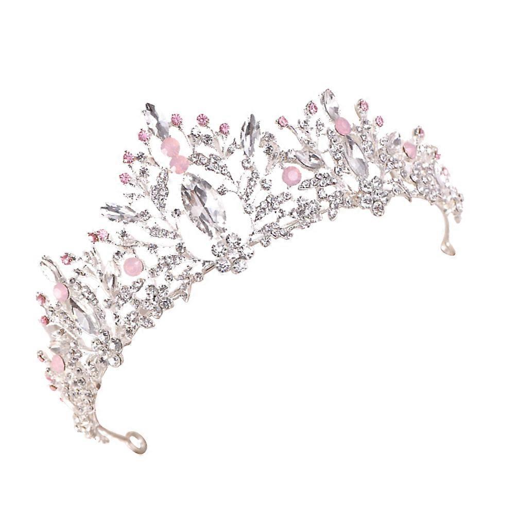 Crystal Alloy Bridal Tiara for Women – Silver Pink Glitter Hair Ornament for Weddings, Engagements, and Parties – Lightweight and Durable Design