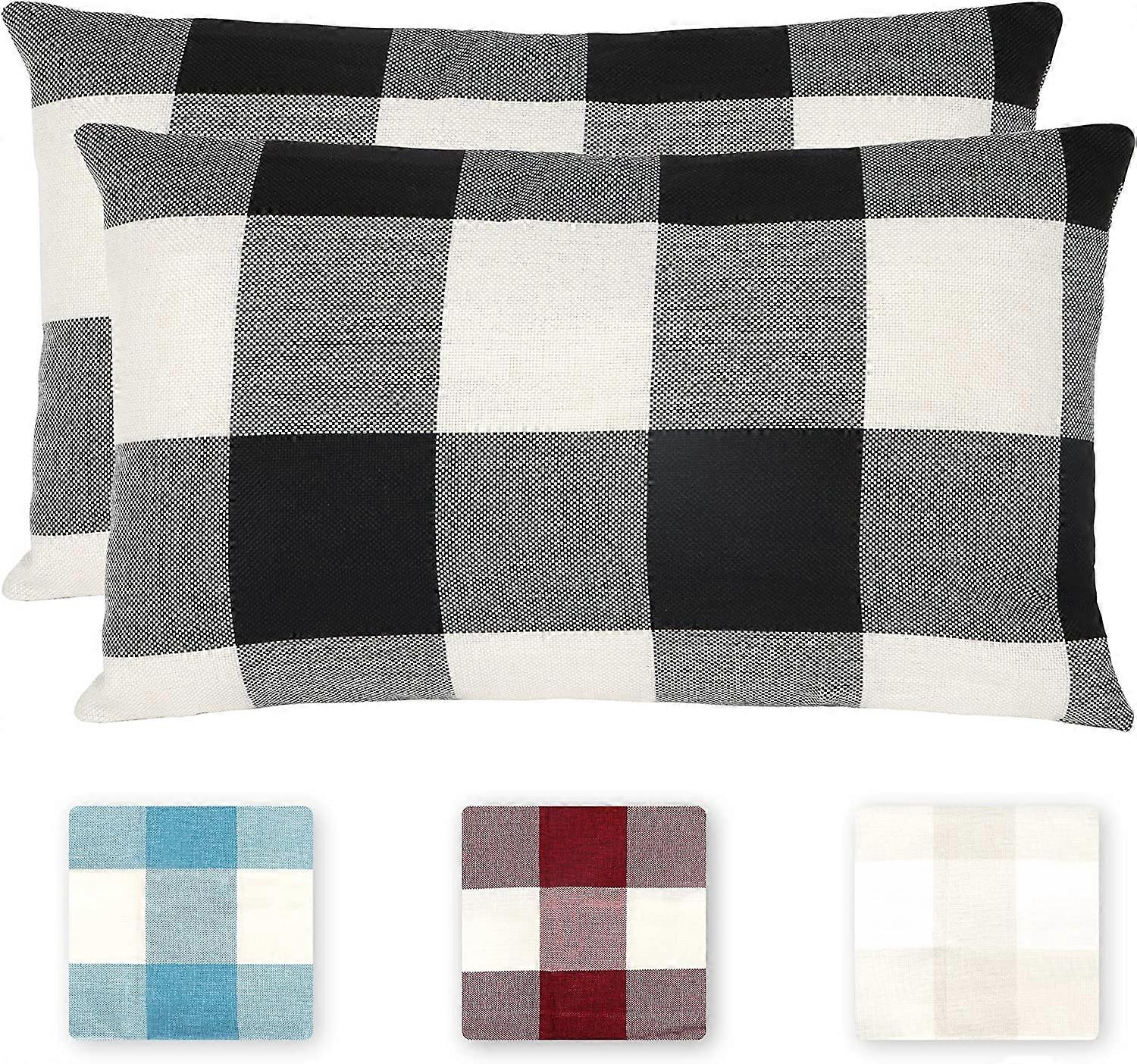 Check Cushion Cover, 2 Piece Wrinkle Resistant Breathable Linen Polyester Pillow Cover, Check Pillow Cover