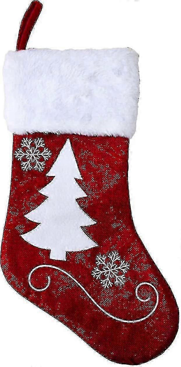 High Quality Fabric socks are made from a high quality fabric with a comfortable white fleece at the opening and are well sewn for durability. Classic Stocking This sock comes in a classic red and white color combination and with four classic designs - elk, deer antlers, snowflake and tree - you can choose and match like you want. Large Gift Bag This stocking measures 18 inches (46 cm) high and 10.5 inches (27 cm) long at the bottom. Thanks to its large opening and capacity, it can easily hold gifts such as candies, chocolates, cards, jewelry, toys and more, and wear your wishes for a unique surprise for family, friends, children, parents and loved ones. Ideal for decoration This stocking with tied string can be hung on fireplaces, stairs, trees, shop windows, next to children& 39;s beds, and is also perfect for decorating parties, classrooms, clubs, offices, restaurants, bars, etc. It is the perfect choice to create the atmosphere. Color: trees