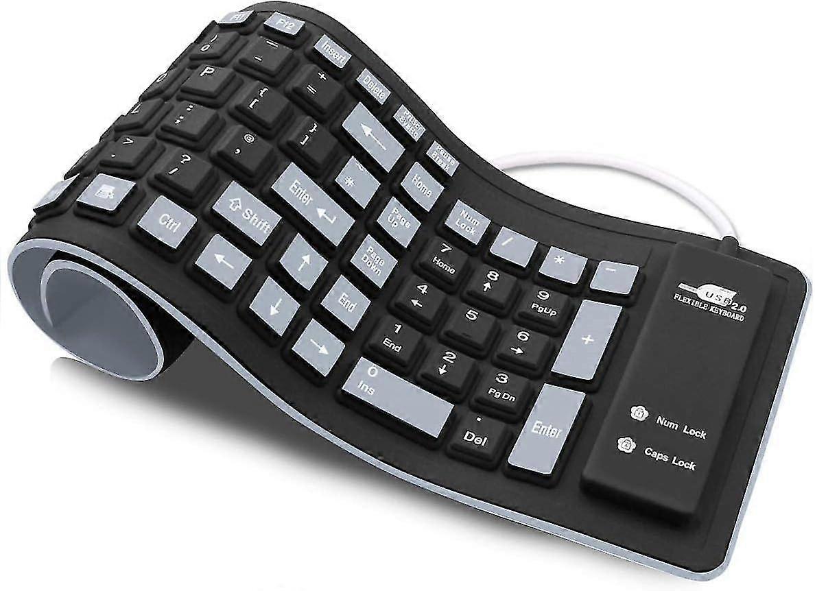 Layout Flexible Keyboard,waterproof Foldable Portable Soft Silicone Keyboard Usb Wired Roll-up(black+grey)