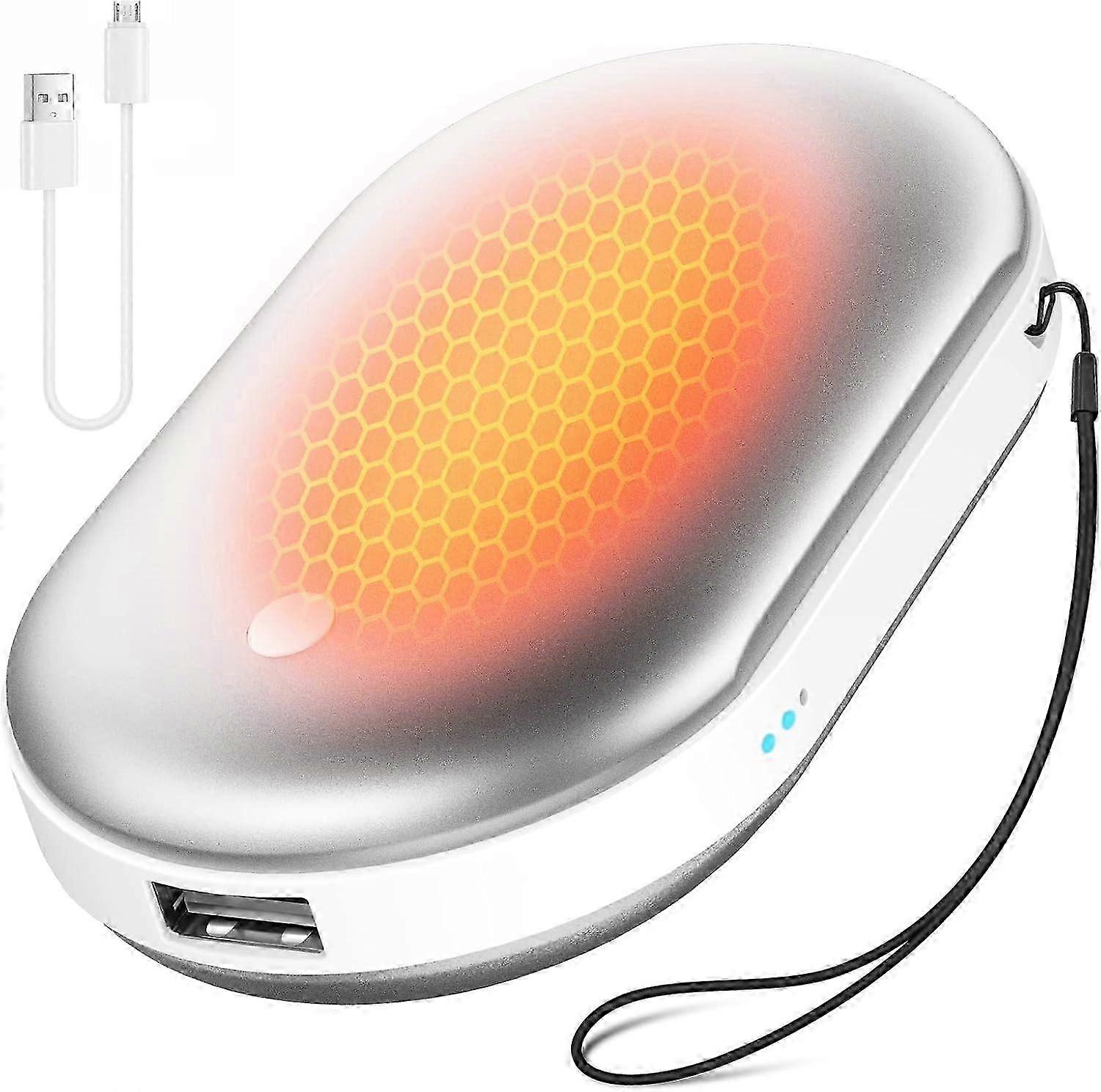 Hand Warmers Rechargeable: 5200mAh Electric Portable Pocket Heater - 3 Levels Heat 2 in 1 Hand Warmers for Hiking Camping Walking,silver