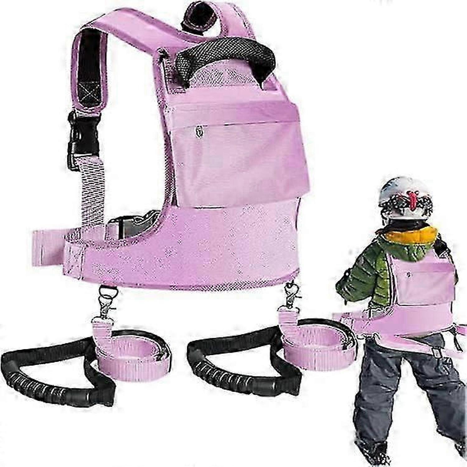 Kids Ski Harness - Adjustable Ski Training Harness Shock Absorbing Leashes, for Children 3-12 Years Old Beginners Outdoor SportsPink