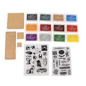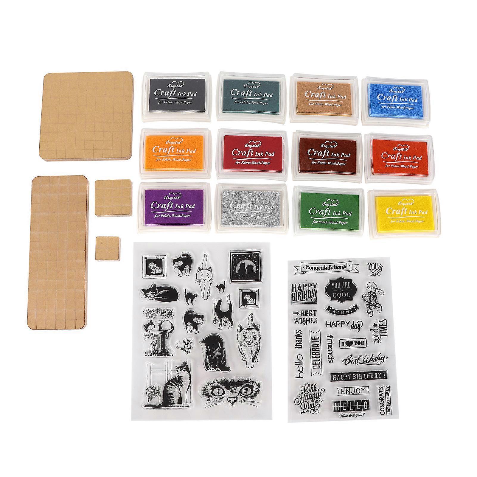 Acrylic Stamp Tools Include 4 Acrylic Blocks 12 Ink Pad 2 Transparent Seal Stamp Blocks Set for DIY Crafts Card Making