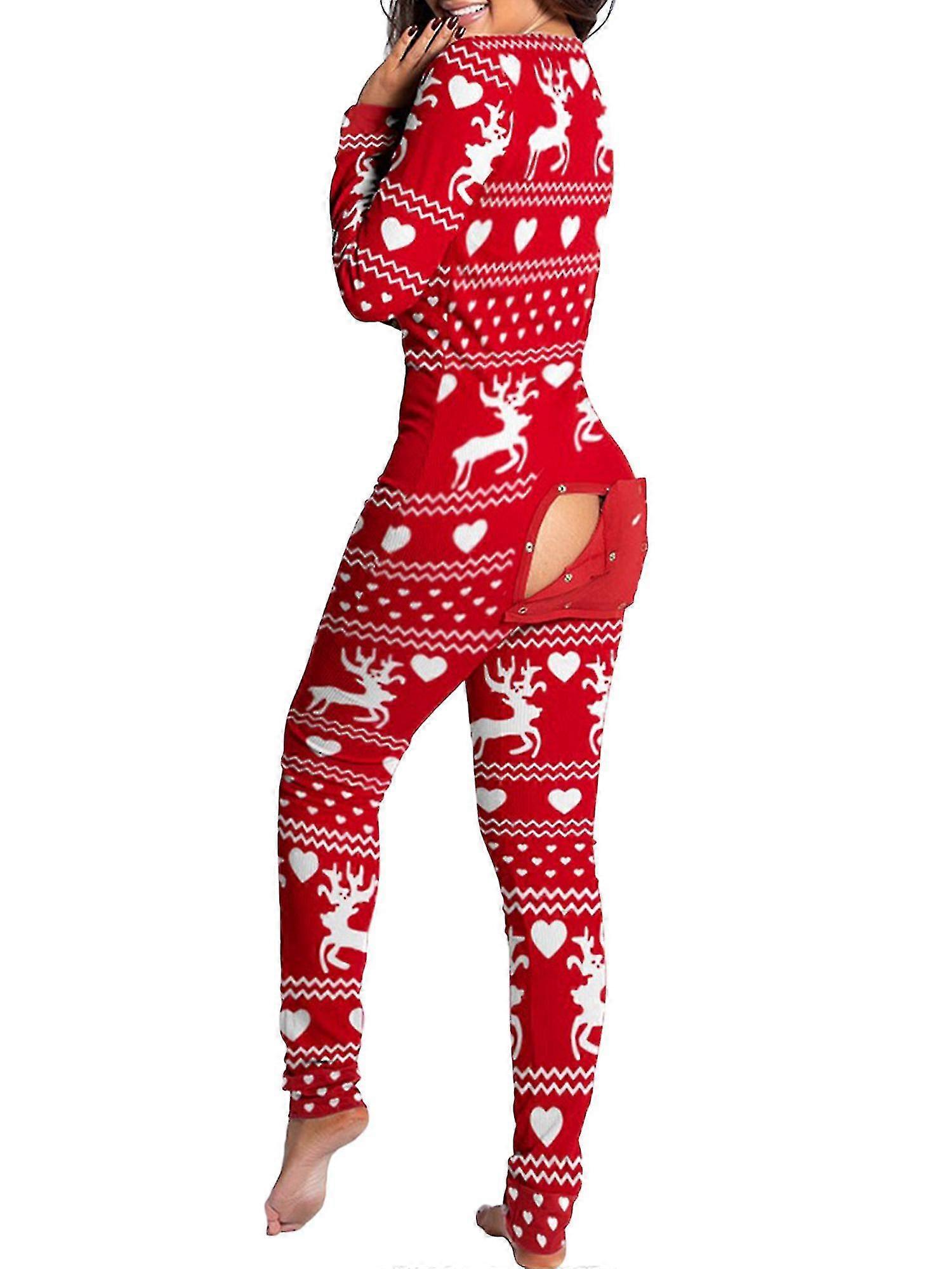 Qian Women Animal Pajama One Piece Christmas Bodysuit Jumpsuit Long Sleeve Sleepwear
