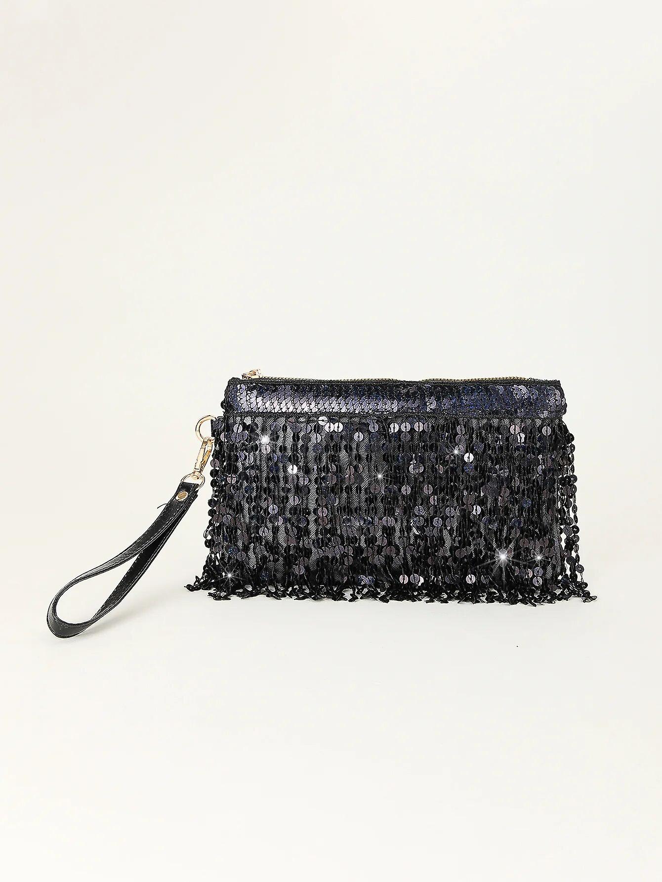Fashion Design Luxury Silver Sequin Rhinestone Tassel Women Small Shoulder Bags Chain Elegant Ladies Party Evening Clutch Purse