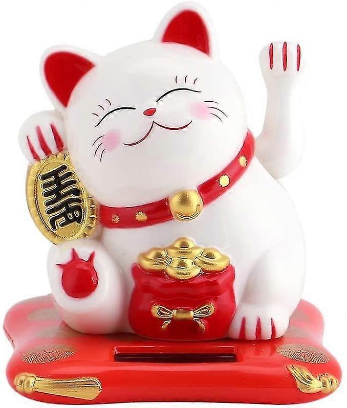 Solar Powered Feng Shui Cute Waving Money Cat Good Luck Wealth Fortune Welcoming Cats Home Display Car Decor Decoration(white)/YY