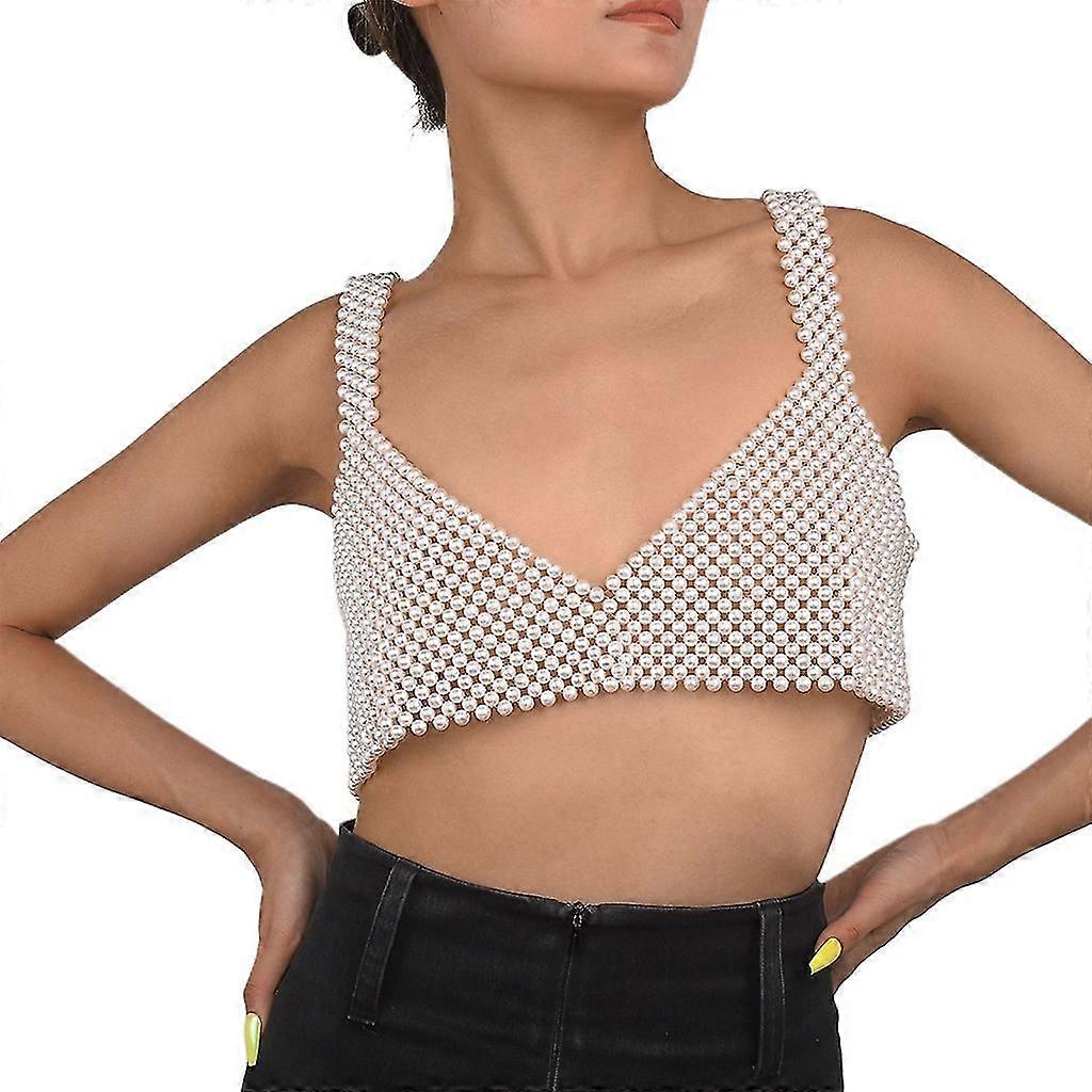 Imitation Pearl Beaded Vest Sexy Hollow Vest Nightclub Costume Body Jewelry