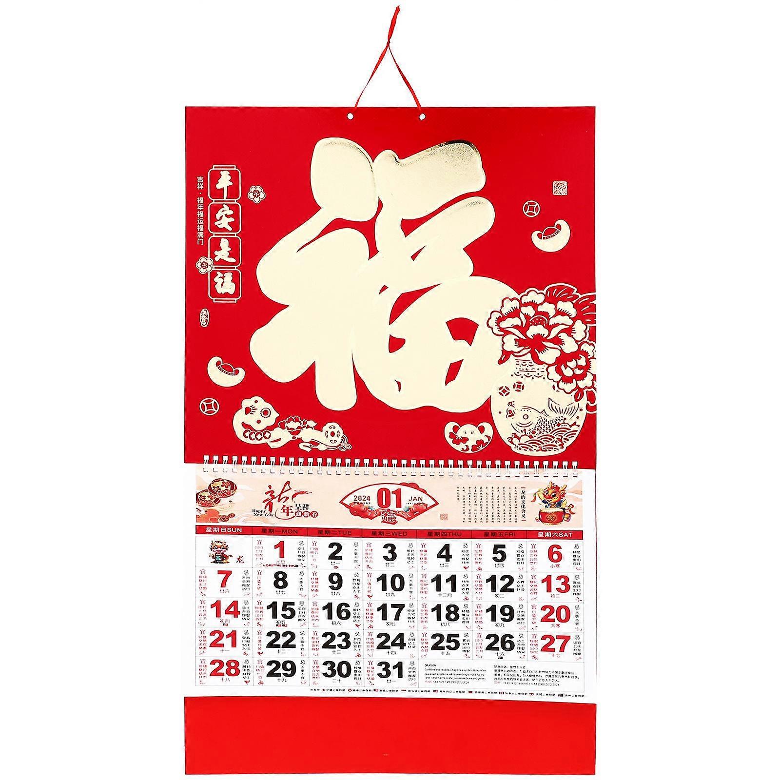 Chinese New Year Dragon Calendar Rectangular Shape Gold Foil Material Home Decoration 1Pcs