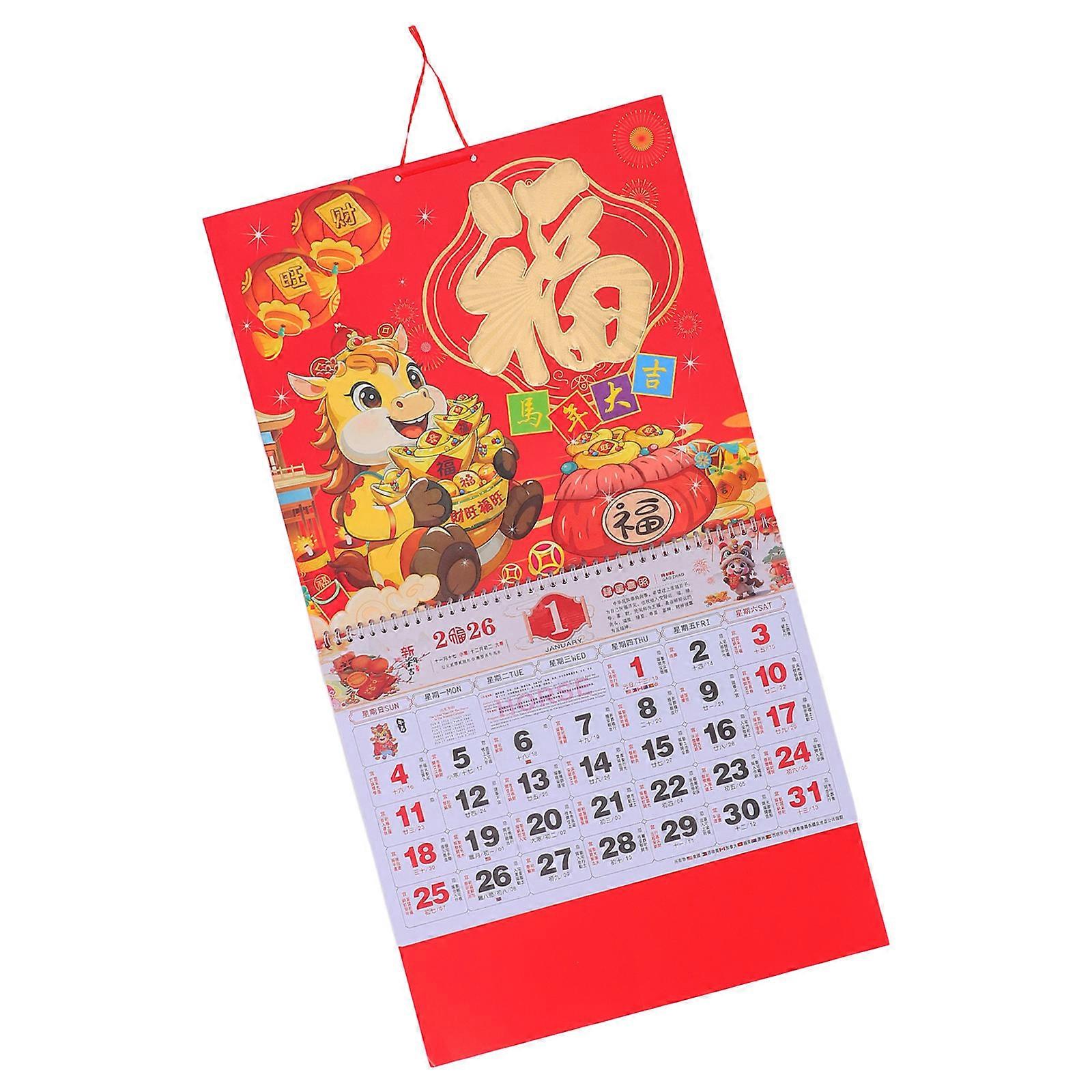 Sturdy Traditional Chinese Lunar Wall Calendar Year of the Horse, Monthly Fortune Characters, Office & Home Decor, Practical Daily Planner