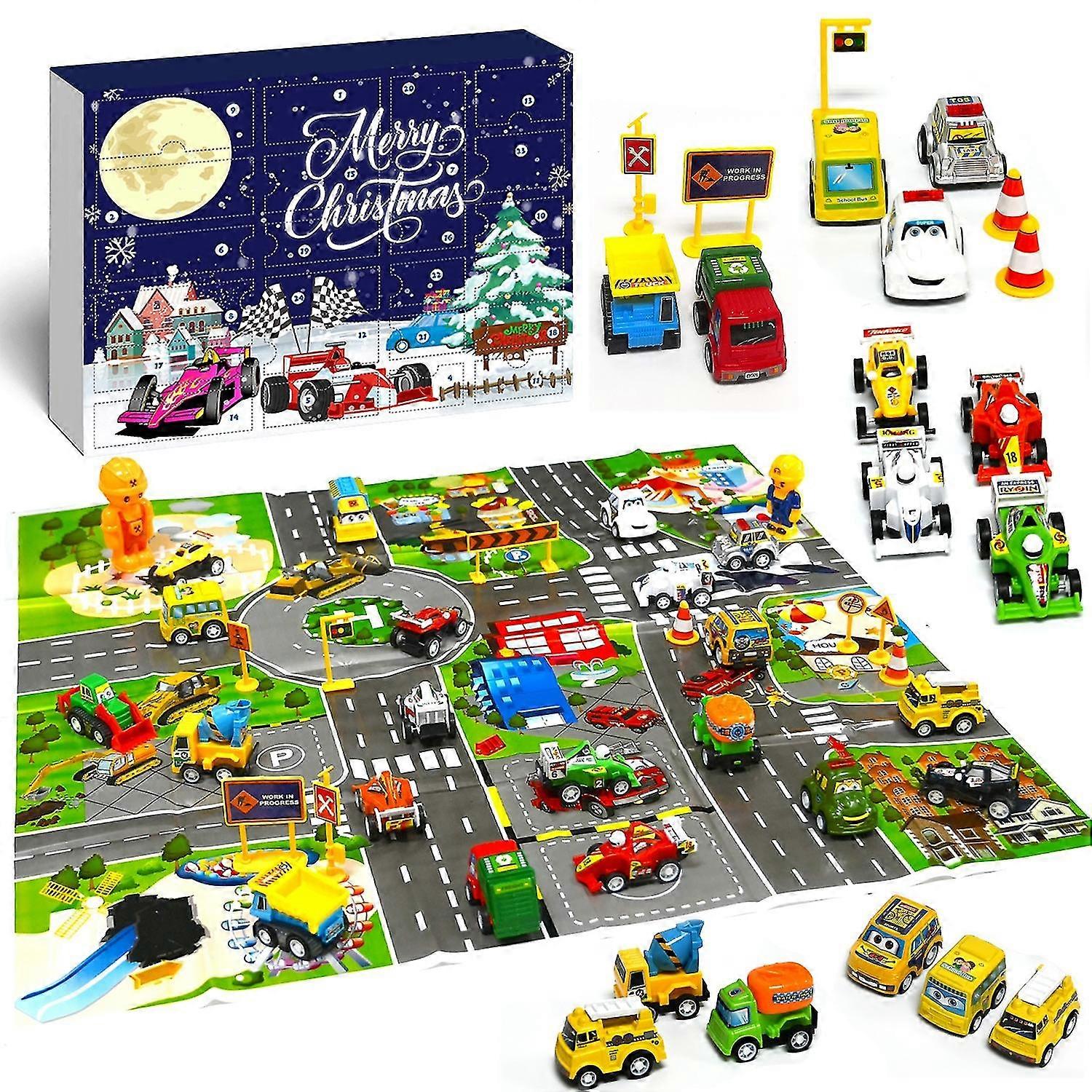 Cars Advent Calendar For Kids Boys 2022 Christmas, 24 Pull Back Vehicles Playsets With Crane Helicopter Tractor Construction Tru