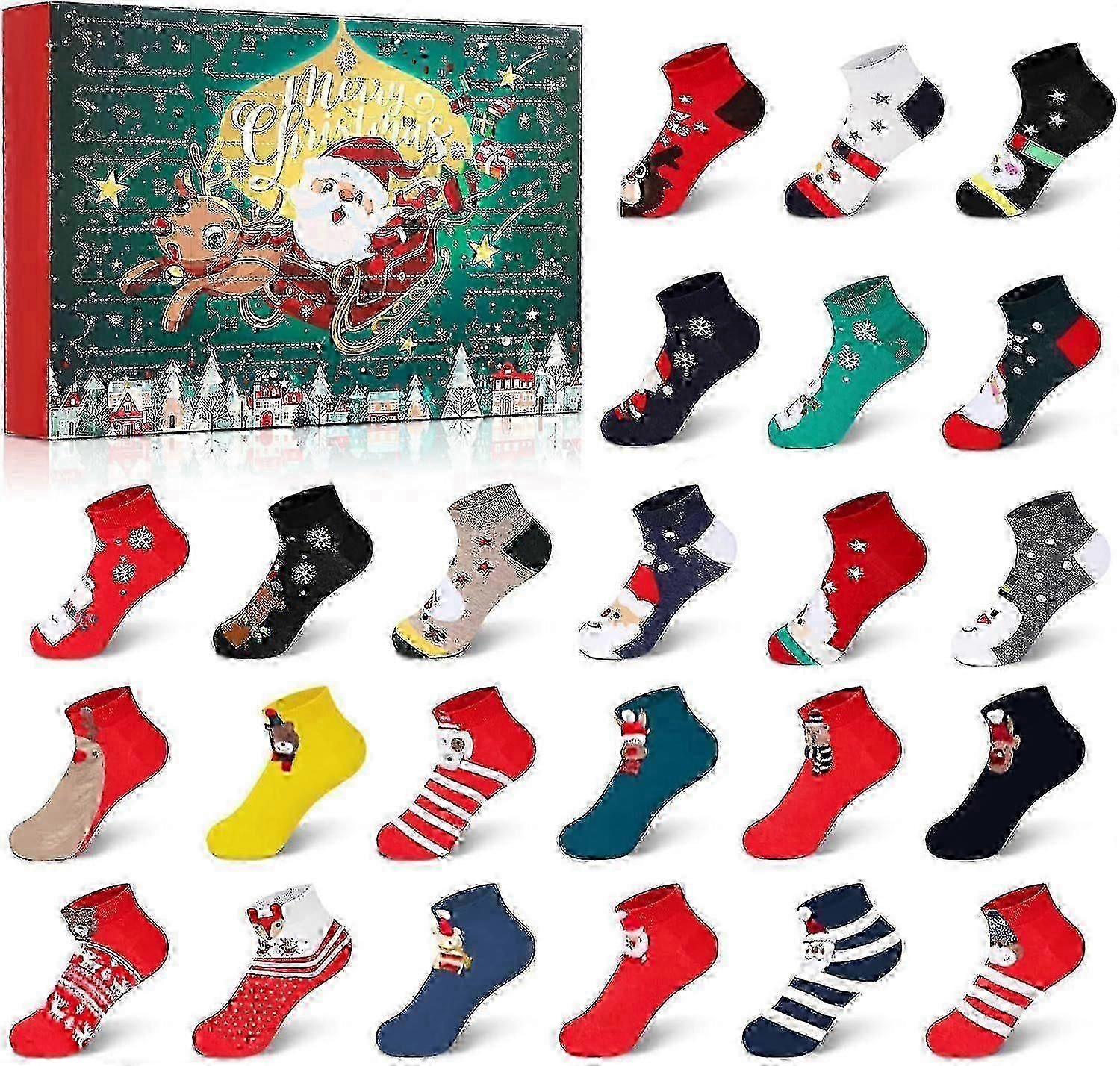 Christmas Socks Advent Calendar 2024, 24 Pairs Christmas Socks Women's Advent Calendar 2024, Christmas Socks Gift Set for Girls Women