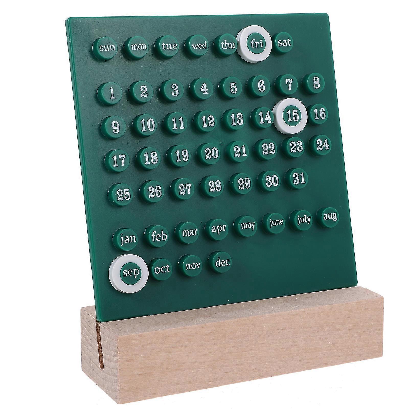 Perpetual Desk Calendar with Rings for Easy Date Change Green Acrylic and Wood 6.5 x 5.5 inches