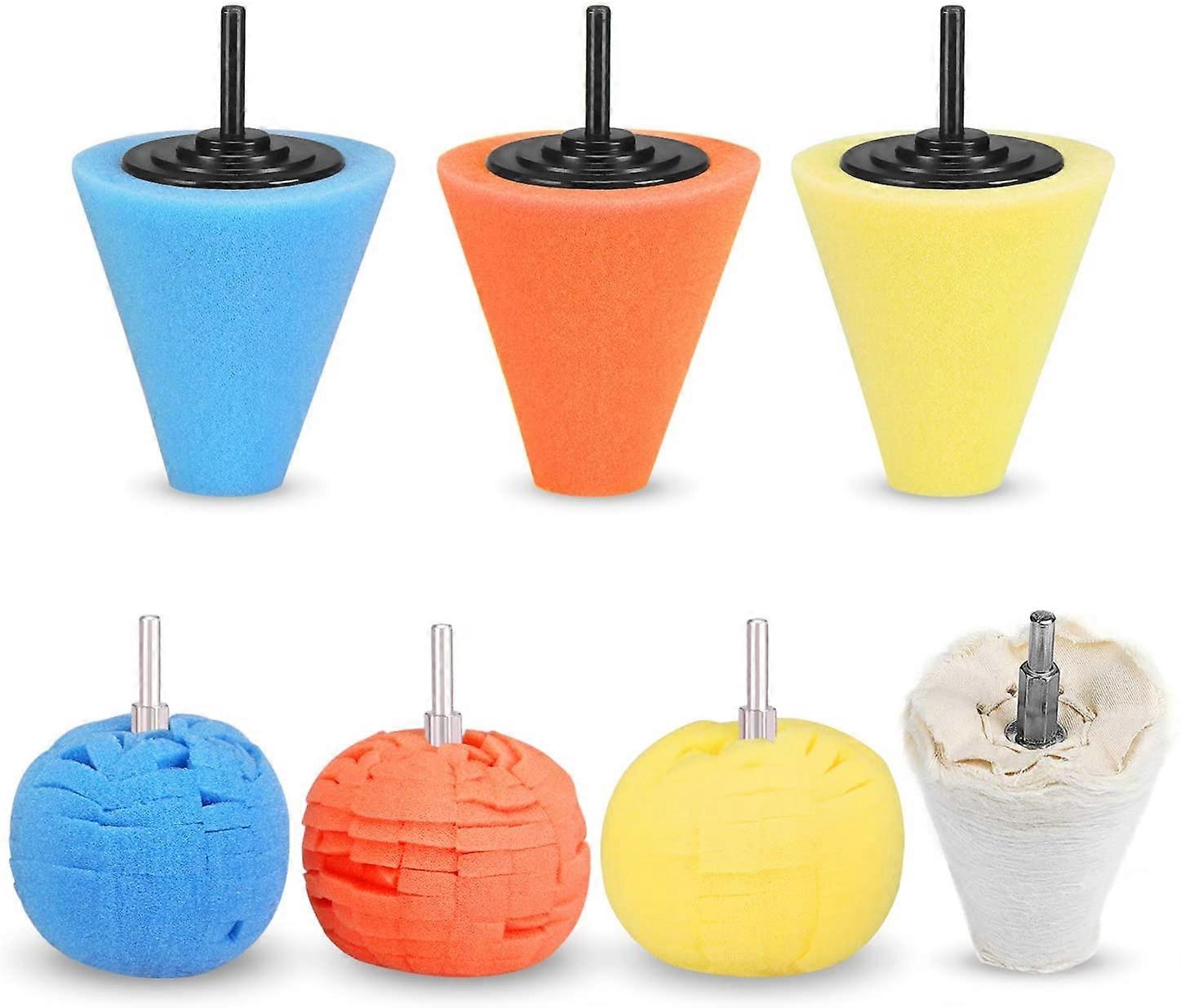 Polishing Ball, 7 Pieces 1/4" 6mm Metal Cone Sponge Rod Polishing Foam Pad Polishing Ball for Automotive Car Wheel Care