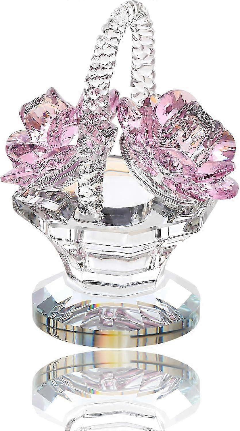 Crystal Rose Basket Collectible Figurines for Women, Glass Flower Gifts for Mum on Birthday Anniversary, Centerpiece Ornaments for Home Decor