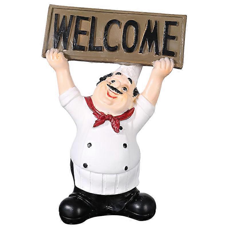 Chef Figurine with WELCOME Sign Board Plaque Home Kitchen Restaurant Decor(1pcs, white)