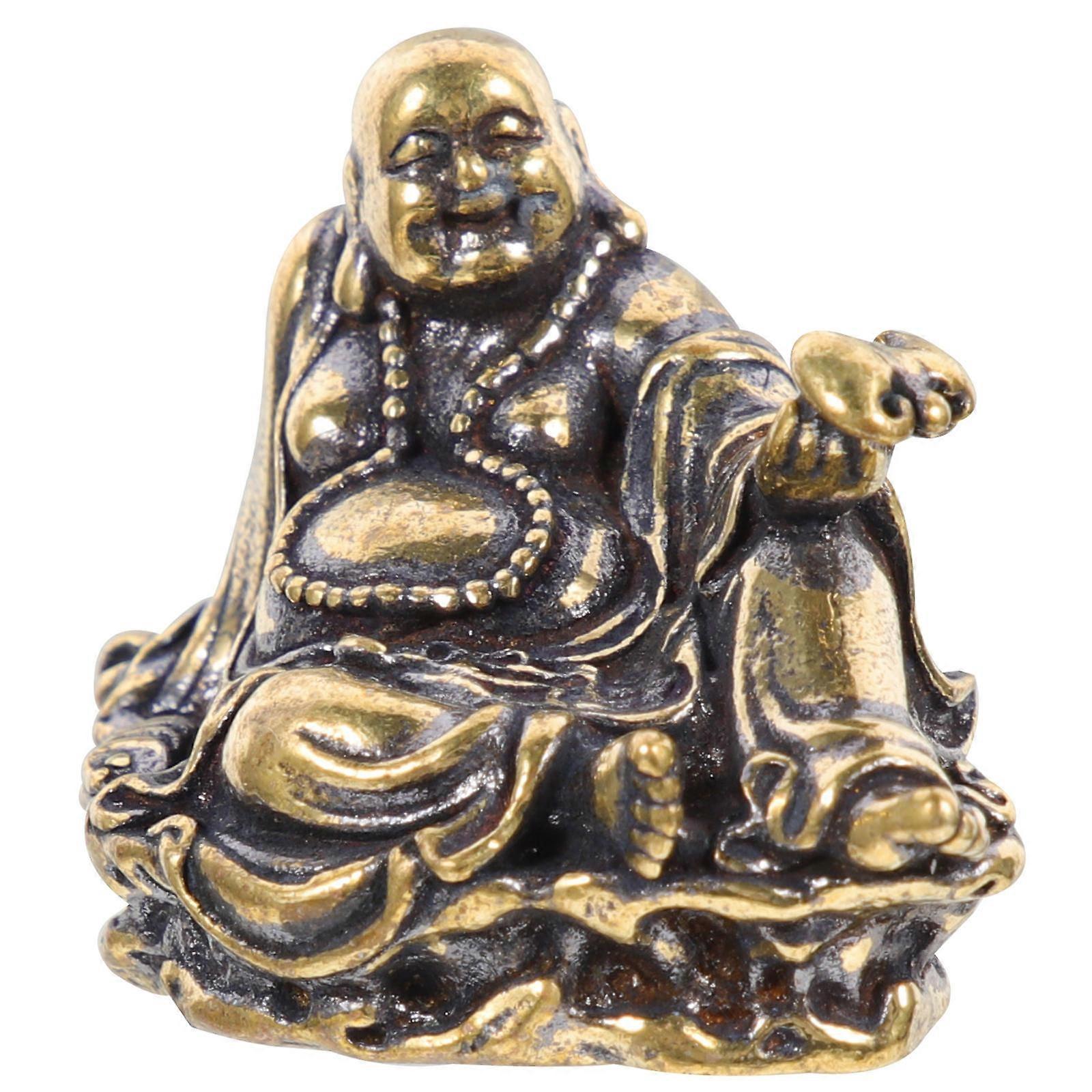 Brass Buddha Statue for Home Decor Coffee Color Desktop Decoration with Flat Bottom 2.5 Inch