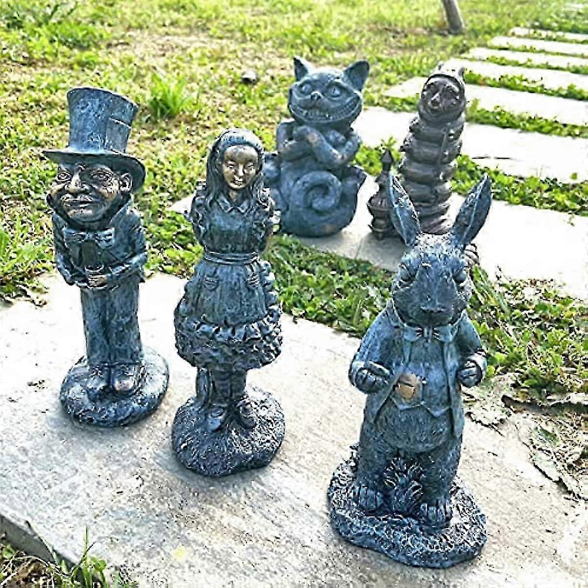 Wonderland Character Statue Garden Ornament Wonderland Ornament Set GardenHome Decor Hand Cast Stone Resin Statue Ornament (5 PCS)