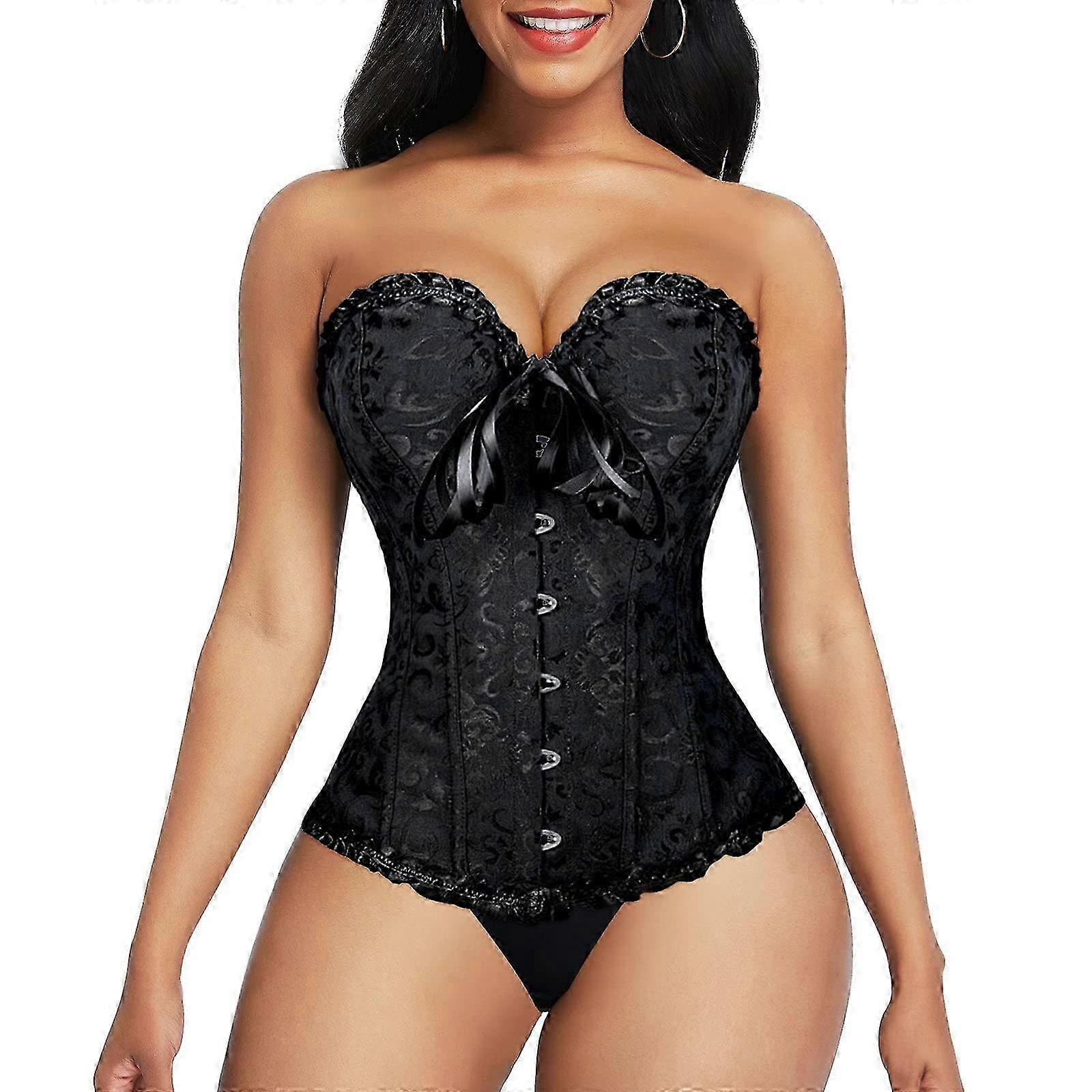 Vintage Women's Halloween Corset Bustier with Lace Up Straps and G-string XXL Size Reinforced with Steel Boning