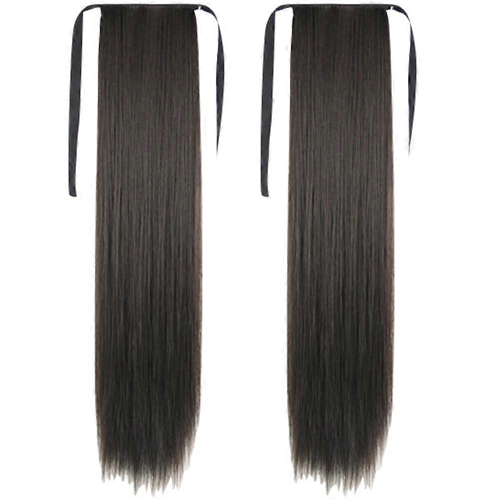Black Straight Ponytail Extension Made of High Temperature Silk for Women Perfect for Daily Use and Costume Parties 2 Pieces