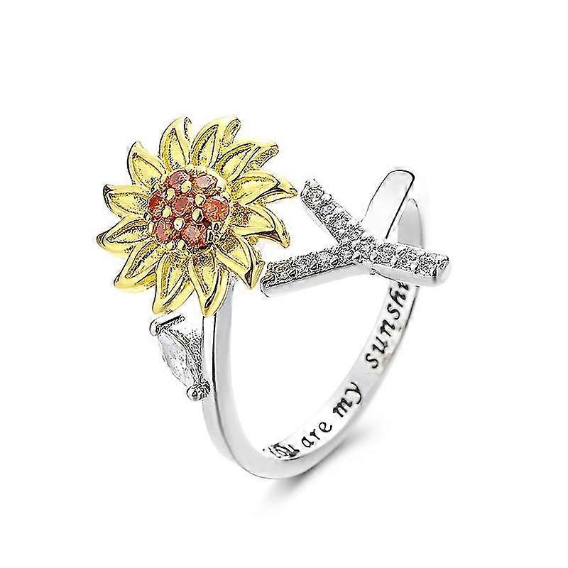 Fidget Rings for Anxiety for Women Sunflower Initial Letter Spinner Ring Open Adjustable Ring CZ Rings Daisy Stress Relieving Ring Jewelry Gift for Wo