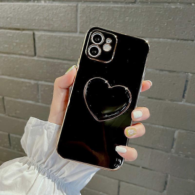 Apply to Korean Heart Holder Plating Shockproof Phone Case For iphone 13 14 12 11 Pro Max MiNi X XS XR 6 S 7 8 Plus SE 3 Anti-drop Cover mobile phone