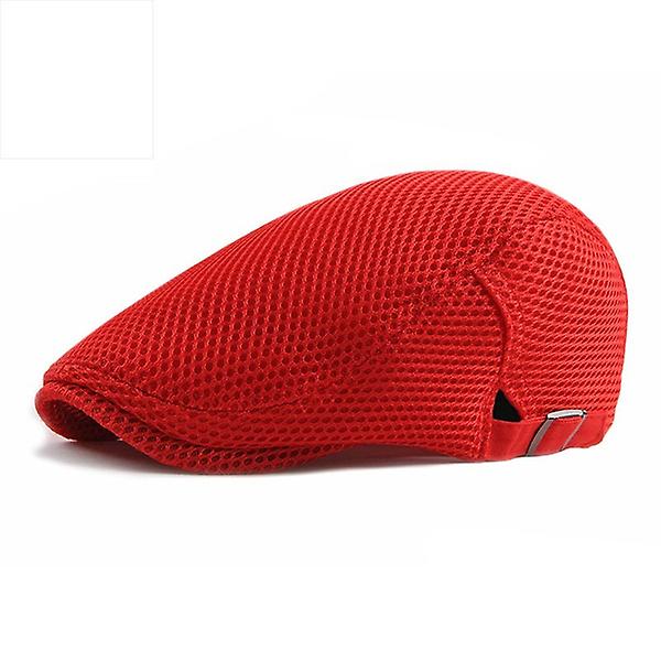 Breathable Mesh Summer Hat Adjustable Newsboy Beret Ivy Cap (red)