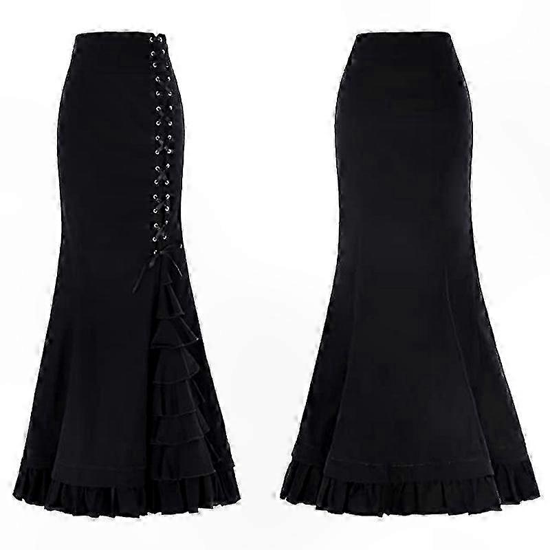 Victorian-Inspired Pleated Midi Skirt for Women - High Waist A-Line Gothic Punk Style with Lace-Up Detail