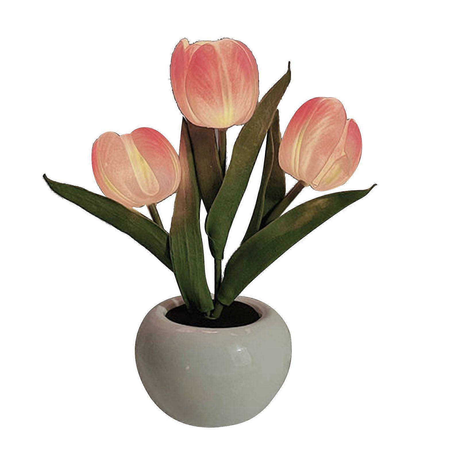 Tulip Night Light Soft Light Exquisite Ceramics PU Flower Table Lamp for Bookstores Cafes Battery Powered Ceramic Base Pink