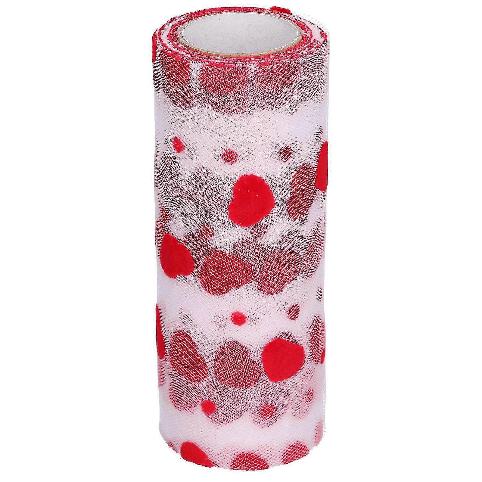 Tulle Rolls 10 Yards Red Heart Shaped Pattern Packaging Ribbon DIY Cutting Romantic Craft Accessories